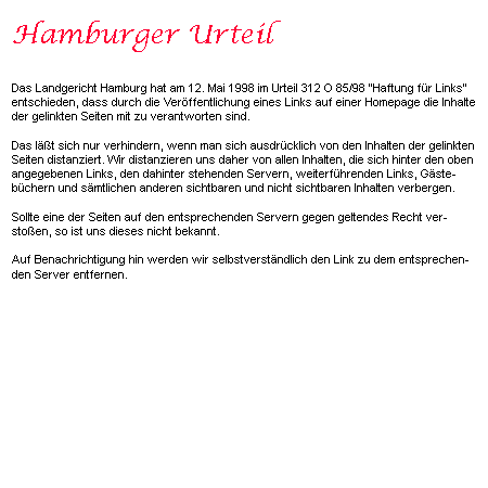 Vorstehendes gilt auch f�r alle anderen Websites, auf